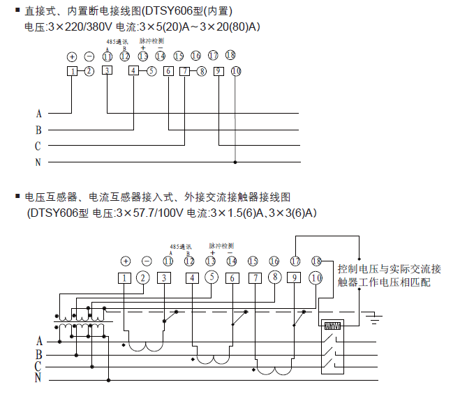 ■ 直接式內(nèi)置斷電功能的電能表可通過電能表內(nèi)部磁保持繼電器直接切斷電源,互感式或直接式外置斷電功能的電能表需控制外部交流接觸器或分勵(lì)脫扣器來切斷電源(建議采用德力西品牌CJX1、CJX2、CDC17系列交流接觸器或CDB9S-125系列預(yù)付費(fèi)電表專用斷路器)