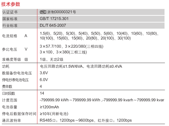 能分時(shí)計(jì)量組合有功電量,正、反有功電量及需量、組合無功,四象限無功電量,并具有