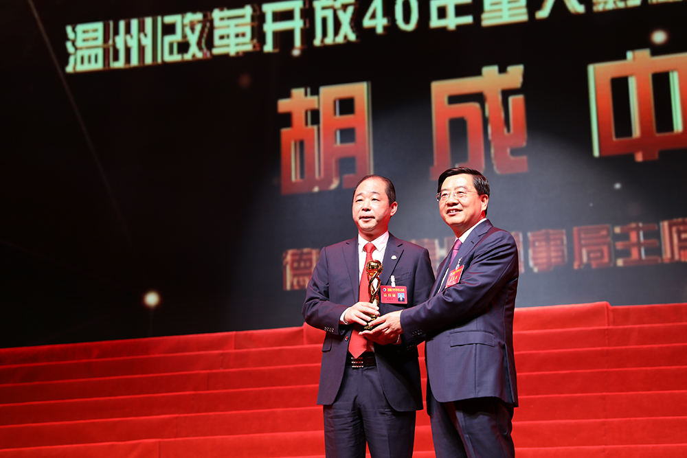 11月9日上午,2018世界溫州人大會(huì)主旨大會(huì)在溫州人民大會(huì)堂召開,近1300名來自五湖四海的溫籍嘉賓和關(guān)心支持溫州發(fā)展的各界人士相聚一堂,共襄盛舉。大會(huì)表彰了一批為溫州改革開放事業(yè)做出重大貢獻(xiàn)的企業(yè)家。德力西集團(tuán)董事局主席胡成中榮膺“溫州改革開放40年重大影響力企業(yè)家”,浙江省副省長、溫州市委書記陳偉俊為胡成中頒獎(jiǎng)!
