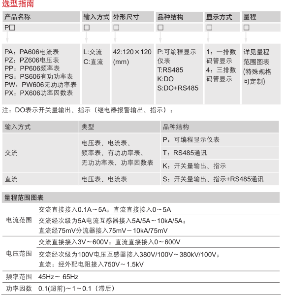 例 1 、如客戶需要三相有功功率表,產(chǎn)品名稱為功率表,輸入方式為交流,外形尺寸為 96 × 96, 品