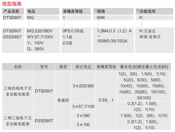 如客戶需要DTSD607型三相四線電子式多功能電能表,電壓為3×220/380V,準(zhǔn)確度等級(jí)為1級(jí),