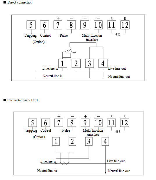2) The function of connection via VT/CT is only available for 1.5(6)A, 1.5(9)A & 1(10)A meters.